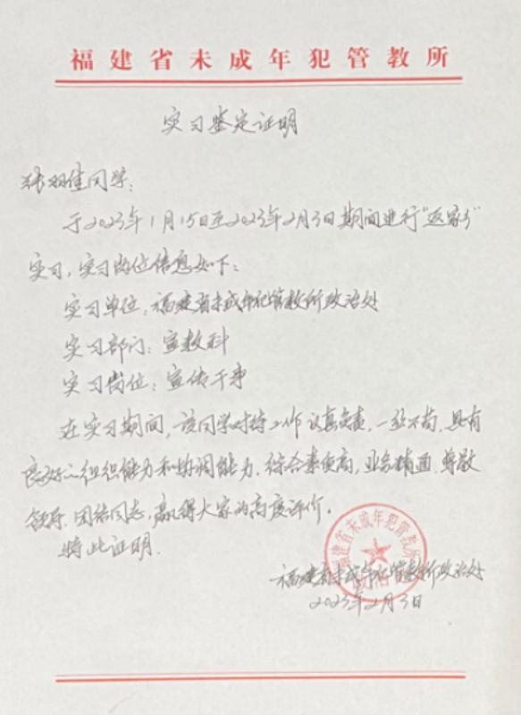 实践经历:协助参与民警工作,整理文书档案,编写宣传信息。