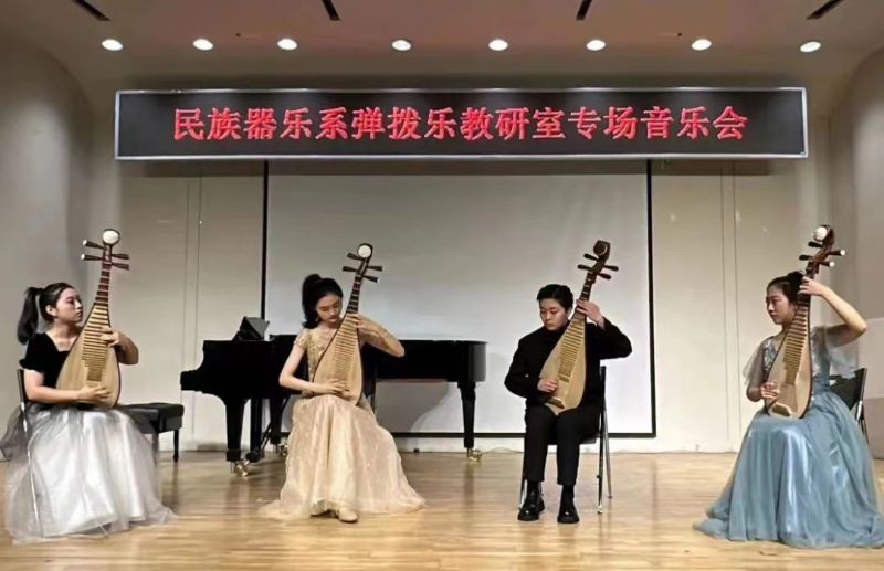 为开展好学习贯彻习近平新时代中国特色社会主义思想主题教育,推动学习指导实践,培养全面发展的优秀人才。4月28日,民族器乐系弹拨教研室在第二教学楼多功能厅举办了“民族器乐系弹拨乐教研室专场音乐会”。本场音乐会共11首作品,由各年级不同专业的学生参与演出。整场音乐会包含独奏,协奏,重奏等多种演奏形式,更有弹拨乐器与管乐、打击乐器的合作。希望学生通过本次音乐会能够开拓视野,学习实践相结合,提升综合素质,为专业学习指引方向。