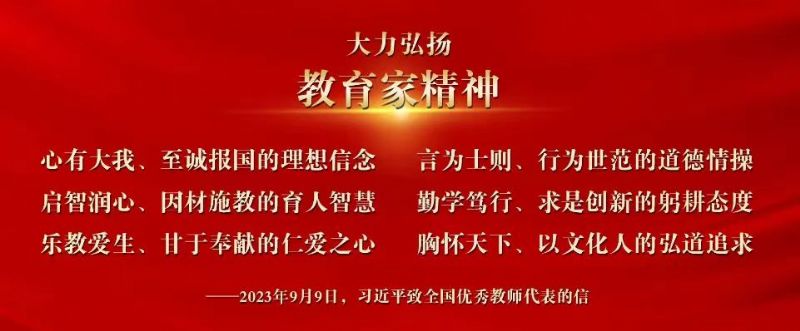 习近平总书记去年在教师节前夕,致信全国优秀教师代表,提出中国特有的教育家精神,深刻阐述了教育家精神的丰富内涵和实践要求。