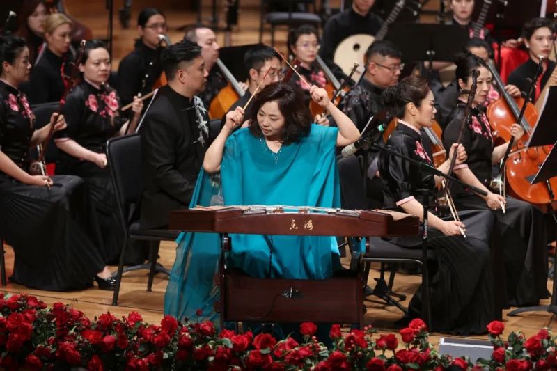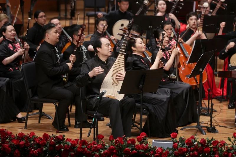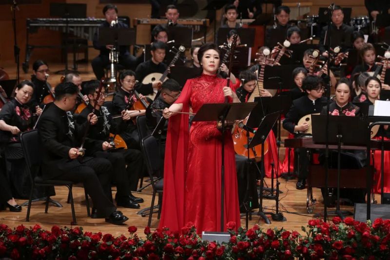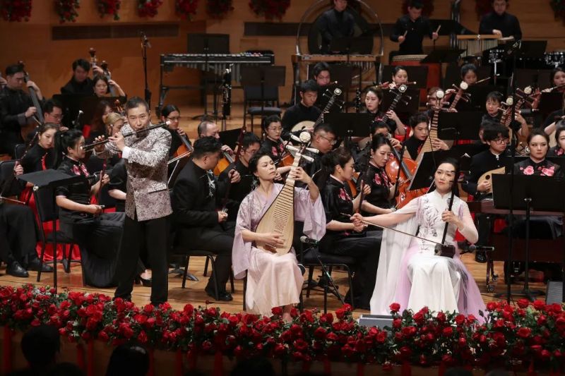 音乐会还巧妙融合传统器乐与当代创作思维,竹笛、琵琶、二胡与乐队联袂演绎《紫竹》,乐曲以江南丝竹为底色,三件主奏乐器交织出烟雨楼台的灵动画卷,展现新时代中国的蓬勃气象。古筝协奏曲《兰亭》以音韵摹写书圣王羲之笔下流觞曲水的魏晋风骨,千年文脉跃然弦上。