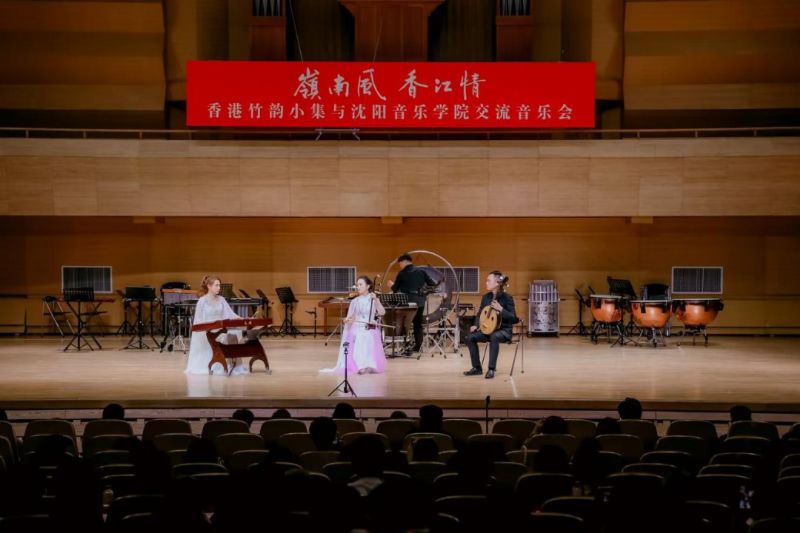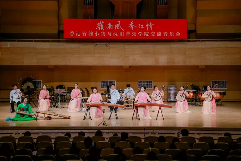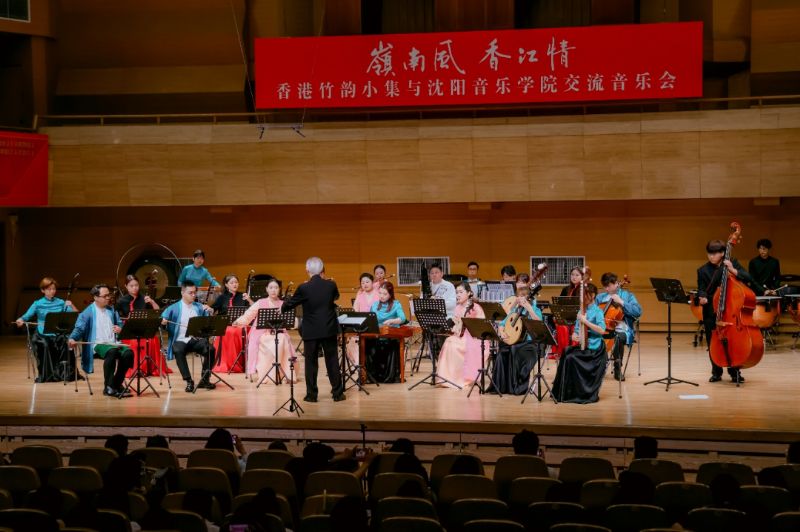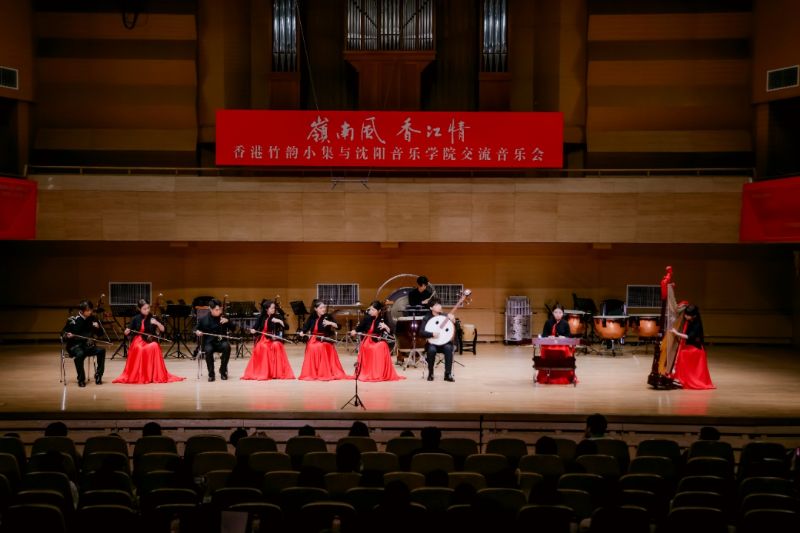 香港竹韵小集是香港专业中乐室内乐团,兼具“最传统,最当代;小而美,简而精”的艺术特色。在“岭南风·香江情”音乐会上,乐团演奏了《新彩云追月》《月光光》《平湖秋月》《春风笑语》《粤舞升平》《万水千山总是情》《兰桂腾芳》及《庙街探戈》等曲目,以音乐呈现香港景致,再现粤乐经典风貌;此外,我院师生还演出了《风吹·山海关外》《萨尔浒随想》《花开向阳》等融合辽宁地域文化特色的曲目。最后,两地乐团合奏《东方之珠》,熟悉的旋律如香江之水,既诉说着香港的独特魅力,也展现出新时代港人的精神风貌。