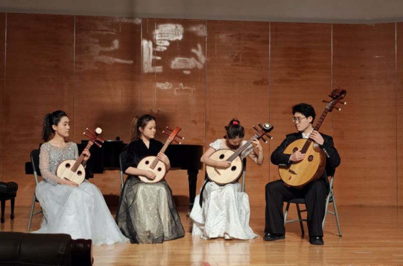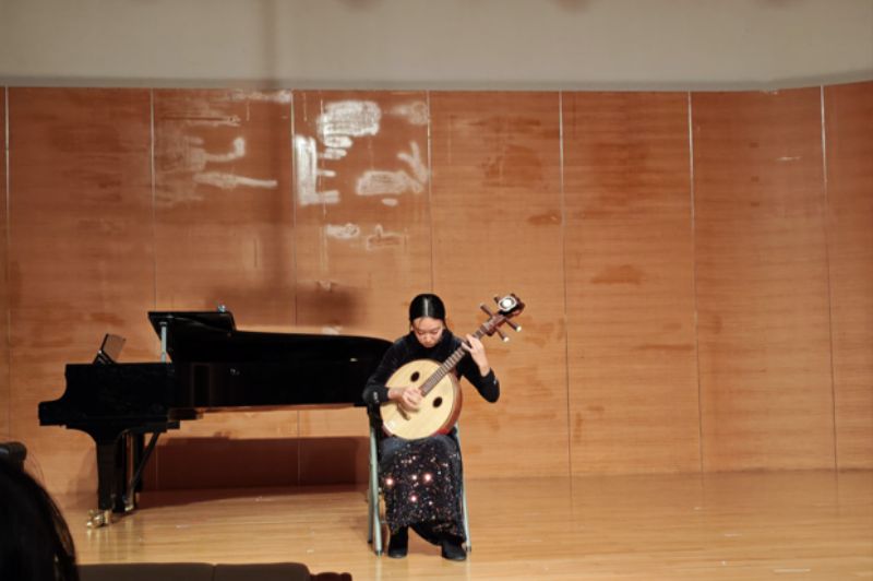 弹拨教研室系列音乐会(二)再续华章。音乐会以谭盾作曲、刘乐改编的筝重奏《卧虎藏龙》开篇,以层层叠叠的旋律引领观众步入武侠世界。随后,中阮独奏《满江红》勾勒壮志豪情,柳琴二重奏《西伯利亚森林幻想曲》描绘北国风光,箜篌独奏《木卡姆》则传递出浓郁的民族韵味。琵琶室内乐《嬉·戏》尽显灵动俏皮,古筝协奏曲《阳光大地》铺陈壮阔景象,扬琴协奏曲《狂想曲》奔放洒脱。阮族重奏《歌剧魅影》更以民族乐器巧妙诠释西方经典,令人耳目一新。琵琶协奏曲《侬》娓娓道来江南雅韵,柳琴协奏曲《花鼓戏幻想曲》则让传统戏曲焕发新生。最终,音乐会在灵感源于羌族民歌、空灵悠扬的扬琴重奏《云上歌》中圆满落幕。