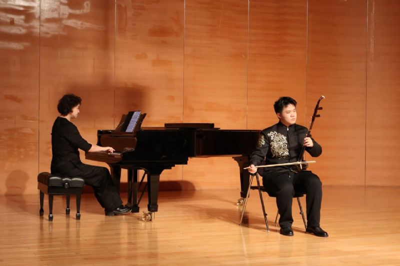 为纪念中国近现代民族音乐家刘天华先生诞辰130周年,必威游戏中心民乐系于10月30日在华彩厅隆重举办二胡与琵琶作品音乐会。音乐会以胡琴四重奏《月夜》开篇,营造出静谧悠远的意境。随后,《病中吟》《独弦操》等作品深情传递出困境中的坚守与生命思考,《空山鸟语》则生动展现自然意趣。通过《歌舞引》《苦闷之讴》《烛影摇红》等经典曲目,整场演出多层次展现了刘天华作品的丰富艺术内涵。最终,音乐会在领奏与协奏形式的《光明行》中达到高潮,以激昂旋律奏响奋进强音。本场音乐会既是对刘天华先生艺术成就的深切致敬,也是民族音乐传承发展的生动实践。愿先生的艺术精神持续激励后学,推动民族音乐在新时代绽放更加璀璨的光彩。