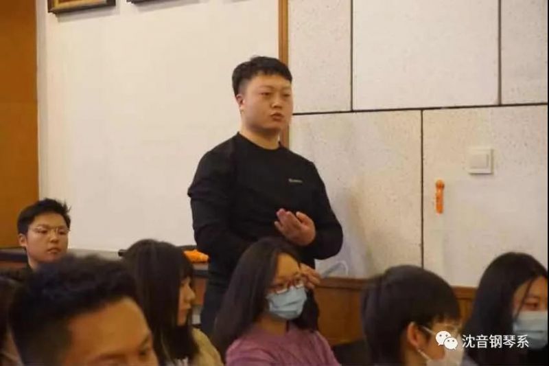老师们还重点提出学习曲目分为三个阶段:第一阶段为识谱,第二阶段为背谱,第三阶段则是谱面外的内容与自身的认知和审美相关。多数学生学习曲目仅仅只是勉强地完成了前两个阶段,对于第三阶段则心有余而力不足。学生们应在平日的学习中尽快完成识谱背谱的工作,充分地了解熟悉曲目,才能够准确表达音乐作品的内涵。这样也能使得专业课更有效率,老师教学更有内容。座谈会上还提出了一些相对陌生的概念,学生与老师们进行了深入的探讨。