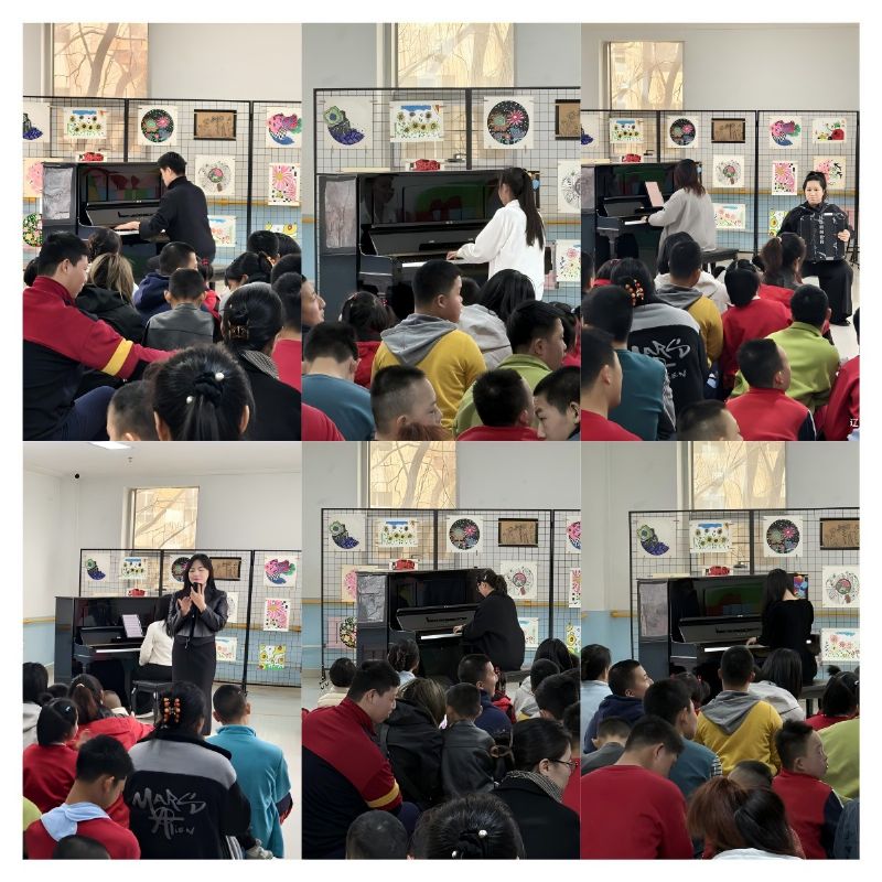 在精心布置的演出厅内,"红色文艺轻骑兵"小分队献上了一场专业与温情交融的音乐盛宴。勃拉姆斯《间奏曲》的深邃、舒曼《梦幻曲》的朦胧、黄虎威《巴蜀之画》的斑斓,构建起跨越时空的音乐对话。创新编排的钢琴与手风琴合奏《贝加尔湖畔》,以清澈音色引发孩子们轻声哼唱;经典民乐改编的《茉莉花幻想曲》则架起中西音乐交融的桥梁。短短半小时的演出,既是一次专业教学的生动展示,更成为浸润童心的美育课堂。演出尾声,师生与孩子们共唱《世界赠予我的》,纯净童声与悠扬琴韵交织成最动人的春之乐章。