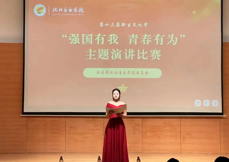用青春声音讴歌时代,让青春故事绽放光彩。为引导青年学子自觉培育和践行社会主义核心价值观,激发爱党爱国爱社会主义的壮志豪情,10月26日,由校团委主办的第十三届新生文化节系列活动之“强国有我 青春有为”主题演讲比赛在华彩厅举行。党委宣传部副部长李双雁、学生处副处长董文胜、团委副书记吕明参加活动并担任评委,部分院(系)分团委书记、新生代表共80余人观看比赛,比赛由音乐学系本科2021级学生贺思琪主持。报告厅内座无虚席,气氛热烈。