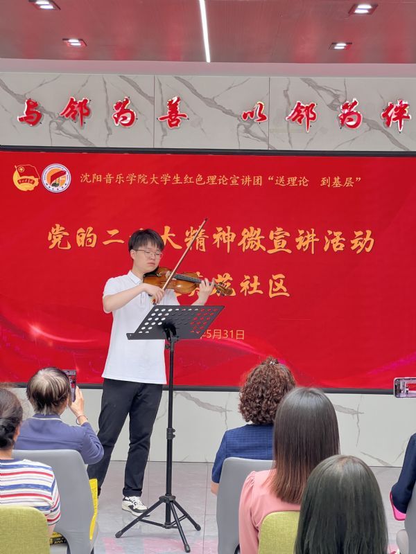 宣讲会上,宣讲团成员充分发挥专业特色,为社区党员群众送去了高质量的器乐演奏、声乐演唱等精彩节目,让党的二十大精神乘着音符旋律流入党员群众的心中,使宣讲更接地气更富感染力,受到热烈欢迎。