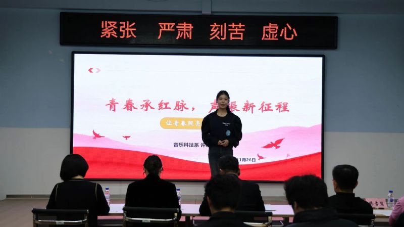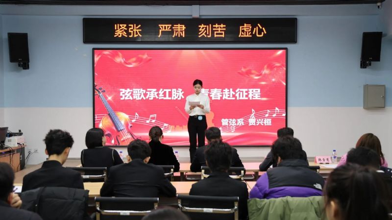 为传承红色基因、凝聚青春力量,为新生搭建展示自我、交流思想的平台,11月26日,由校团委主办,音乐教育学院分团委承办的“青春承红脉 声振新征程”主题演讲比赛圆满完成。党委学生工作部副部长王春生、音乐教育学院党委副书记吕竹、社会教育培训中心教授王珉珠、戏剧影视学院副教授赵轶、团委综合科科长韩雪慧参加活动并担任评委,比赛由音乐教育学院学生郭栩含、金利群主持。
