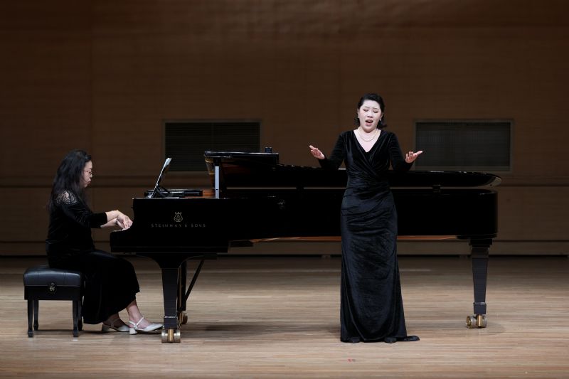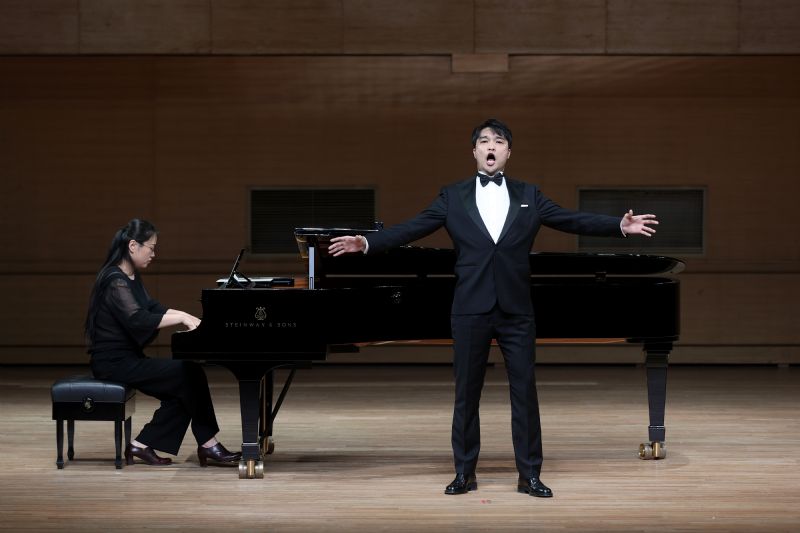 大师课后,第十四届中国音乐金钟奖(美声)参赛选手音乐会在音乐厅举行。6位学生演唱了12首中外经典歌曲,既有慷慨激昂的咏叹调,让人心潮澎湃,也有动人心弦的中国艺术歌曲,使人潸然泪下,情感丰富,引起了全场观众的共鸣,仿佛身临其境。这些作品均是经过莫华伦的悉心指导顺利完成的,学生们充分发挥了自己的才华,展现了精湛的演唱技巧和情感表达能力,尽展大师班学习的收获,现场观众反应热烈,赢得了一致好评。音乐会的成功举办也为此次莫华伦大师班画上了圆满的句号!