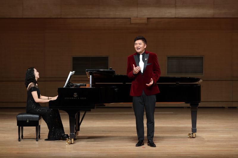 在花腔女高音歌唱家,中国音乐学院艺术学博士,第十二届中国音乐金钟奖总决赛金奖获得者毛一涵在她饱含深情的歌声中,演出拉开了序幕,她演唱的作品类型多元化,包含传统民歌、原创作品等,展现了中国声乐的民族性及多样性。毛一涵演唱了《今年梅花开》《青玉案·元夕》《抬头生死两茫茫》《千年铁树开了花》《七月的草原》,她演唱的歌曲音域跨度大、难度高,她的声音干净清亮的同时兼具恢宏大气,既体现艺术的高雅,又有生活的浓情,更抒发了对祖国的热爱。