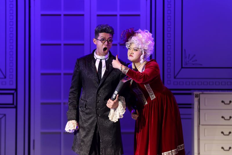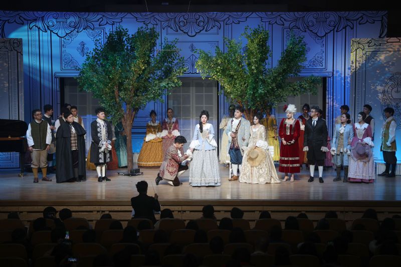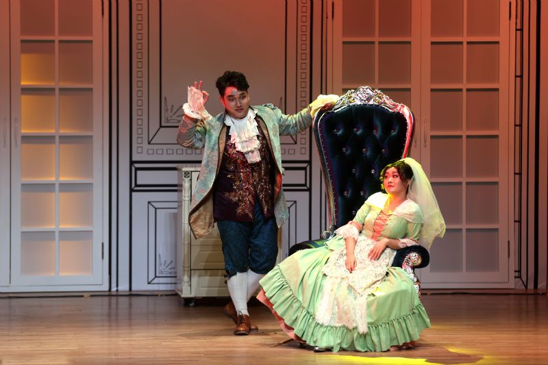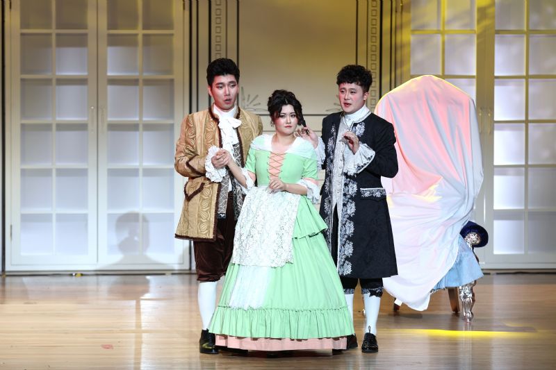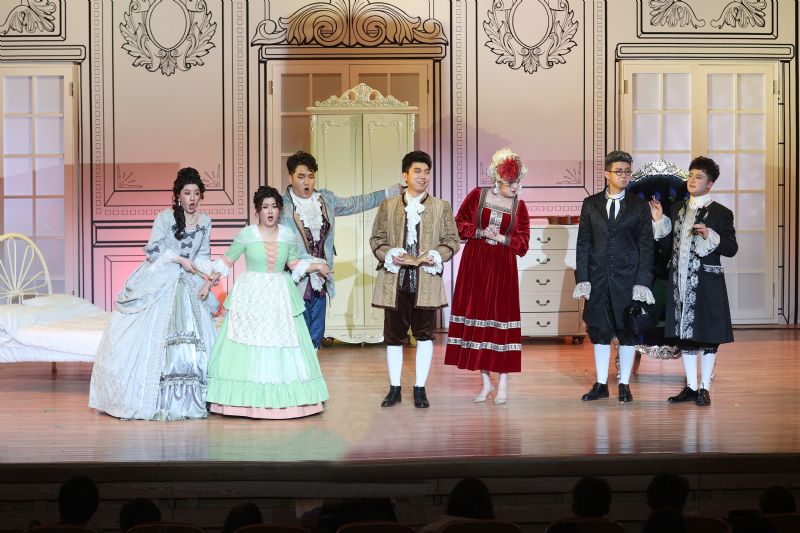 必威游戏中心声乐歌剧系的学子们精湛的演唱和表演,生动地再现了17世纪欧洲宫廷的皇室贵族与平民之间的矛盾纠葛,幽默又不失优雅,轻松又不失深情,机智又不失善意的人物形象。剧中的经典咏叹调和重唱,如《再不要去做情郎》《求爱神给我安慰》《你们可知道什么是爱情》《你赢得了诉讼》《微风轻轻吹拂的时光》等唱段使现场的辽宁声乐艺术界的专家、学者、艺术家、音乐迷、歌剧迷以及广大市民的笑声和掌声此起彼伏。
