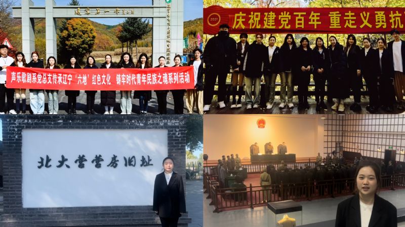 声乐歌剧系党总支带领师生党员群众走进“‘九一八’纪念馆”、北大营营房旧址、本溪老秃顶抗日根据地等地,通过声歌“青年说”宣讲团宣讲、抗日歌曲联唱等形式,深刻了解辽东血盟救国军成立前后的历史故事及东北抗日义勇军艰苦卓绝的奋斗历程,领悟东北抗联精神,感悟信仰的力量。