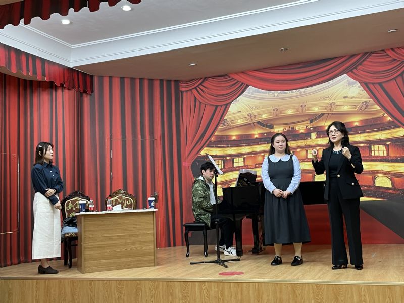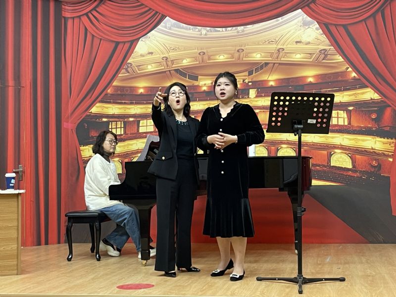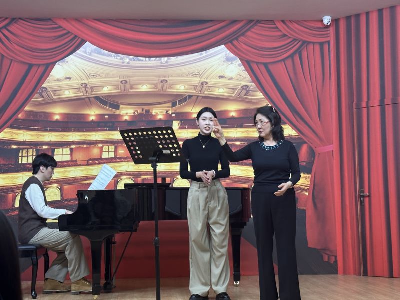 大师课中,朴教授用生动的语言和形象的示范,带领学生们走进艺术的殿堂。她详细讲解了音乐演唱时需要注意的技术技巧,如发声的位置和气息的运用等,强调了探索歌曲的背景、角色的内涵和演绎等,引导学生要充分发掘艺术作品的表现力,将歌曲的“灵魂”表现得淋漓尽致。