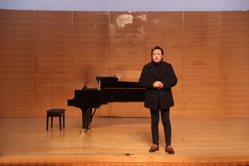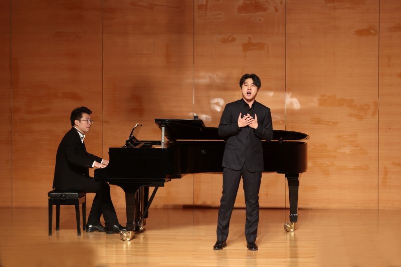 2022级研究生王致超演唱契莱阿歌剧《阿莱城的姑娘》选段“è la solita storia”,全曲感情浓郁,如歌如泣,他的歌声层层递进,令人动容。第二首歌曲《故乡》旋律激昂,他用充满力量和温暖的声线,唤起了现场听众的爱国情怀。