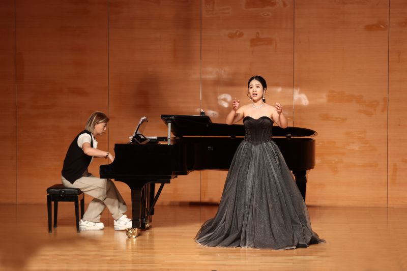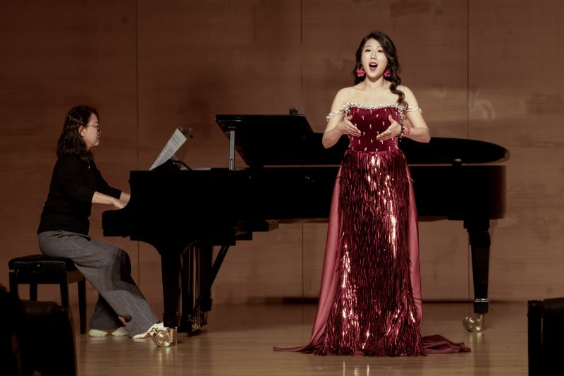 2023级研究生从琛用她温婉细腻的声音和真挚的感情演唱歌曲《绒花》,她演唱的第二首歌曲是莫扎特歌剧《费加罗的婚礼》选段“Dove sono i bei momenti”,表达了伯爵夫人罗西娜希望以自己的真诚来挽回丈夫伯爵的感情,将其演绎得动人心弦。