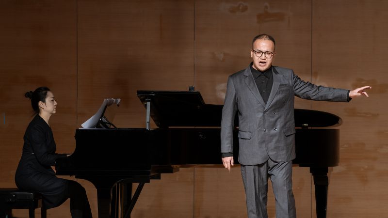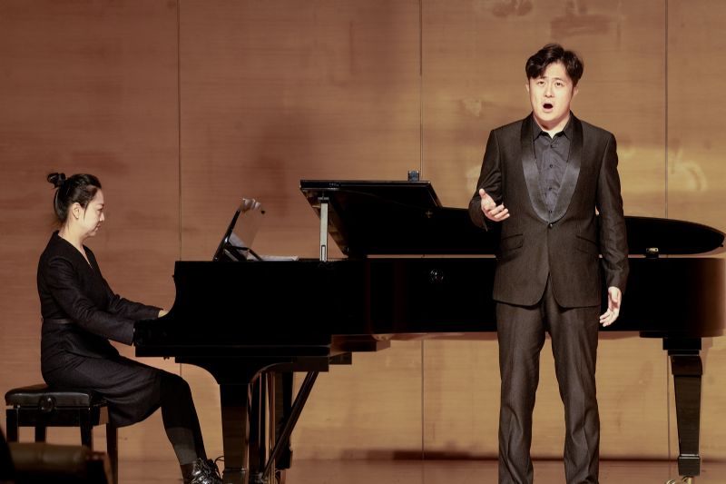 2023级研究生孟庆鑫演唱莫扎特歌剧《费加罗的婚礼》选段“Hai già vinta la causa”,他的声音雄浑宽阔又富有张力,并通过精湛的表演赋予了角色伯爵生动鲜活的人物形象。第二首歌曲《黄河颂》是鲁艺校友冼星海创作的男中音独唱曲目,反映了抗日救亡的真实写照,他的歌声沉稳有力,表达出中华儿女对母亲河黄河的热情颂歌。
