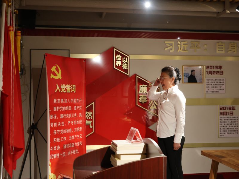 活动最后,全体党员紧握右拳,在党旗下庄严宣誓,重温入党誓词。铿锵有力的誓言再次激发了大家对党的忠诚和对共产主义事业的坚定信念。教师党员石曾献唱了一首《党旗更鲜艳》,用歌声表达了对党的热爱和敬仰之情,将活动的氛围推向了高潮。