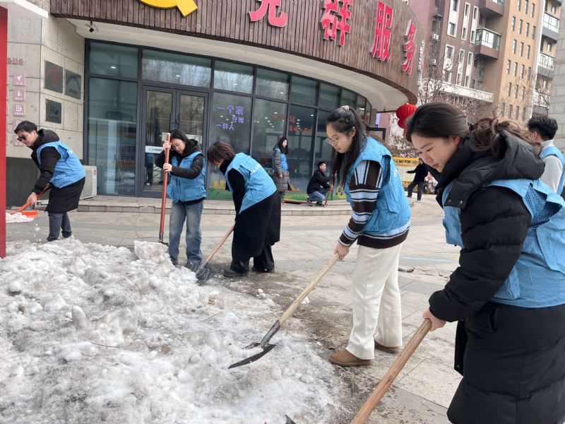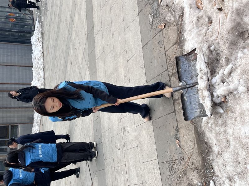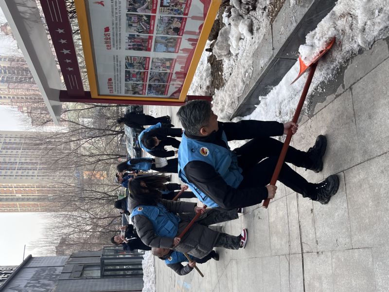 文艺演出结束后,党员师生们迅速转换角色,投入到紧张而有序的志愿服务活动中。他们拿起扫帚、铁锹等工具,分组对社区内的绿化带、休闲广场等公共区域进行了除雪和清扫。党员们不怕脏、不怕累,分工合作,干劲十足,经过大家的共同努力,社区环境焕然一新,得到了社区居民的一致好评。