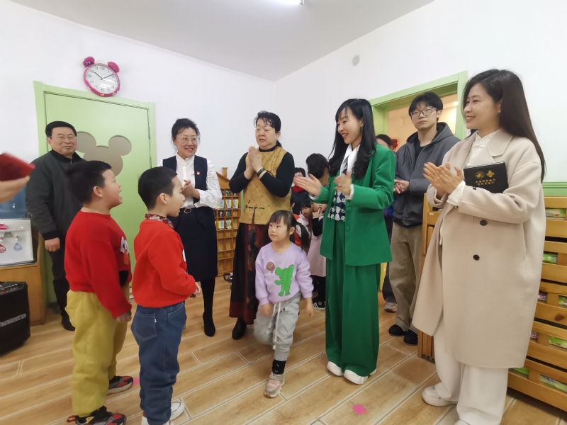 随后,党员们走进了教室,与宝宝们一起唱歌、互动,传递温暖和关爱,小朋友们用他们稚嫩的歌声和朗朗的古诗声,表达着他们的喜悦与感激,这些欢快的声音使在场的所有人动容,党员师生也用爱心去拥抱每一个孩子。这些特殊儿童,虽然花朵开得稍晚,但在特教老师们的精心培育下,绽放出了自信与希望的光芒。