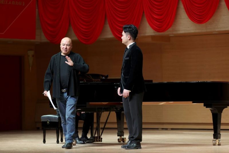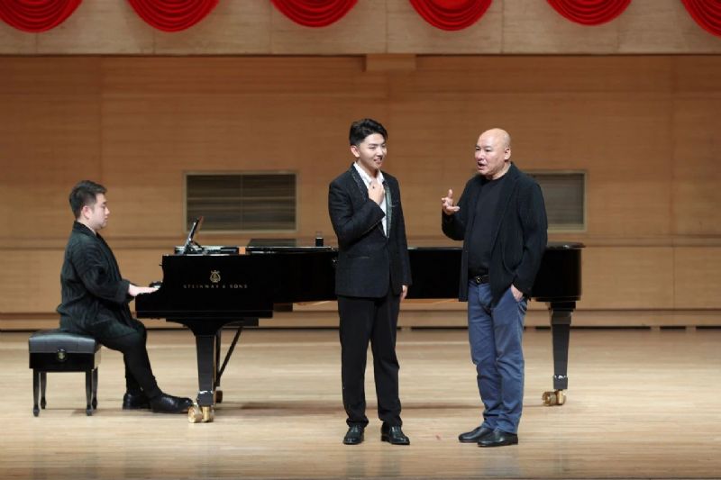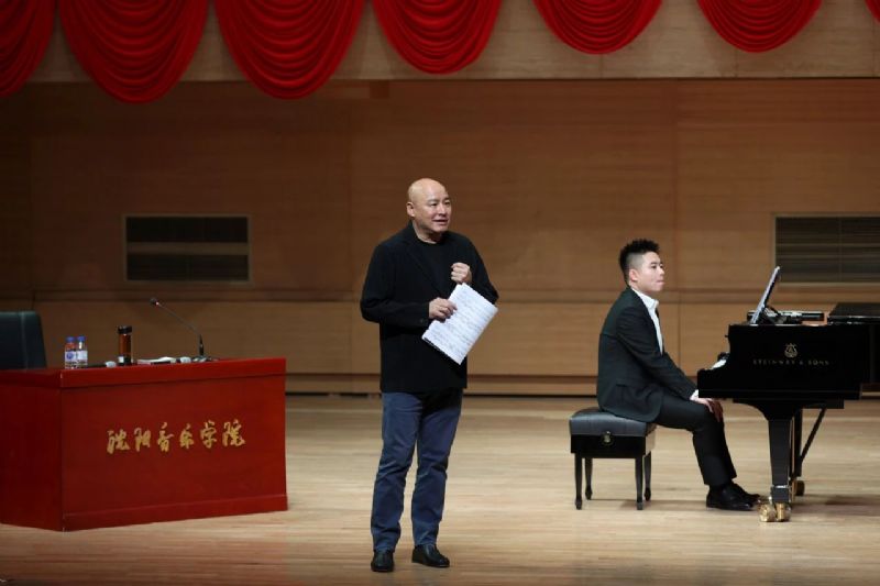 在现场教学中,民族声乐系学生邵佳宁演唱了《长相思·其一》与《青春舞曲》、周建凯演唱了《大江东去》与《手挽手》、李文跃演唱了《走进香巴拉》与《阿拉木汗》、黄瑶婷演唱了《鸟儿在风中歌唱》。曲学选教授对同学们的演唱给予充分的肯定与鼓励,并针对每位同学的演唱特点、作品内涵提出了许多有益的建议。