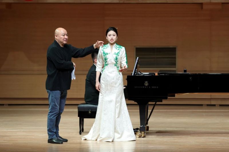 音乐处理方面,曲老师指出每一次转调都应该是一次情绪的转换,自由演唱部分也要注意自由不是没有节奏、韵律,“心随情动”,演唱中情绪要跟随呼吸的韵律。演唱要与钢琴伴奏相互配合并融于同一意境当中,要发自内心地去表达作品情绪。同时,演唱不同类型的作品时,演唱处理的要求也有所不同,例如,演唱古曲时要注意作品意境的统一,唱出古曲的意境、语境。舞台表演方面,曲老师强调表演要跟随歌曲情绪而动,手势动作不要过多或程序化,但也不能过度僵硬,从而影响演唱。