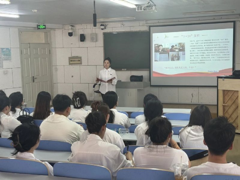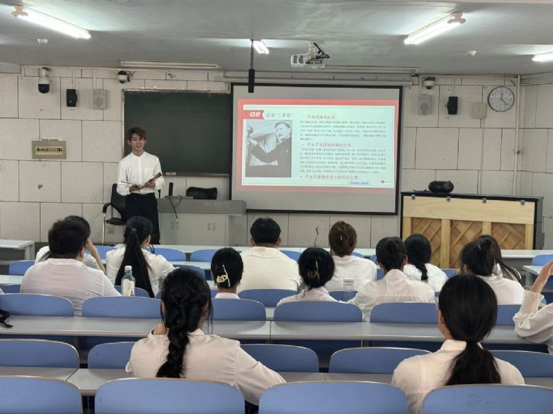 宣讲会上,宣讲团成员李传毅同学以《开满海棠花的院落》为主题,深刻讲述了周恩来总理生活简朴廉洁奉公的优良品质。王胜男同学以《刚正不阿“雷青天”》为主题,深刻讲述了陕甘宁边区高等法院院长雷经天坚毅正直、秉公执法的优秀品格。孙华阳同学以《“国家机密我怎么可以在家里随便泄露”——陈云》为主题,深刻讲述了陈云同志带头遵规守纪、严于律己的严谨作风。王语涵同学以《“从没得罪纪委书记这个称号”——王瑛》为主题,深刻讲述纪委书记王瑛忠诚干净担当以及执纪为民的朴素情怀。宣讲团成员用学生听得懂的语言、记得住的影像资料,易领会的主旨要义,为同学们上了一堂生动的党纪学习教育思政课,帮助同学们学懂弄通革命先辈、道德模范们恪守党纪、廉洁奉公的初心,号召同学们在党纪学习教育中铸牢理想信念,增强党性修养,砥砺青年担当。