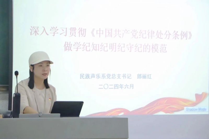 为深入学习贯彻习近平总书记关于党纪学习教育的重要讲话和重要指示批示精神,进一步推动党纪学习教育走深走实,把“六项纪律”内化于心、外化于行,推动党纪学习教育融入日常、抓在经常,让学纪、知纪、明纪、守纪在师生党员中蔚然成风,6月7日,民族声乐系党总支书记郎丽红作“深入学习贯彻《中国共产党纪律处分条例》,做学纪知纪明纪守纪的模范”专题党课,民族声乐系副主任沈德鹏作“严明政治纪律,增强党性观念”专题党课。民族声乐系师生党员、入党积极分子参加党课。