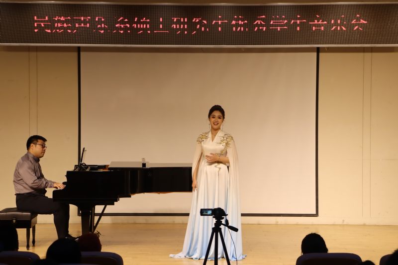 音乐会上,张雅薇同学演唱的《雷火中的笑容》以激昂的旋律展现了无畏的精神,贺琳琳同学演唱的《粉墨春秋》道出了戏曲人生的沧桑与辉煌,李文跃同学演唱的《山丹丹开花红艳艳》以其欢快的节奏传递出革命的热情与希望,《塔里木河》则描绘了壮丽的自然风光,勾起了人民对美好生活的向往,精湛的演唱技巧和震撼人心的舞台感染力将音乐会推向高潮。一首首旋律优美的歌曲,一个个感人肺腑的故事,不仅展示了民族声乐系硕士研究生的高水平的演唱技巧,也为全系师生带来了一次难忘的艺术之旅