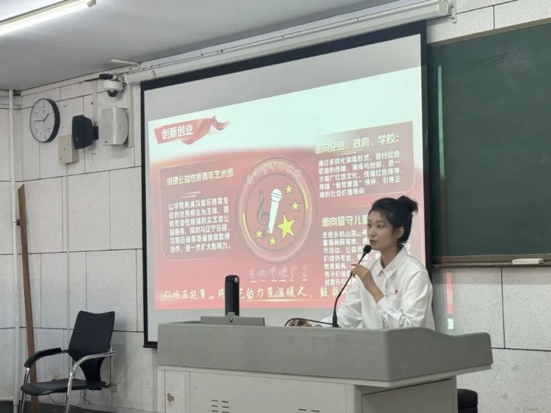 在学习方面,黄瑶表示,大学时代是发展优势和才能的时机,是获取知识和建构理解的时候,也是一段不断探索的岁月。作为民族声乐的学习者,不仅需要扎实的专业技能,也需要深厚的文化底蕴作为支撑。她以自己的课程为例,为大家分享了学习经验与奖学金评选经验,鼓励同学们耐心、认真与严谨地投入学习之中。在思想方面,黄瑶分享了身为一名学生党员所秉持的信念与责任。她结合自身经历,首先强调了党的引领对于个人成长的重要性。她坚信,有责任有担当,青春才会闪光,并呼吁同学们积极入党,根植红色沃土,做“鲁艺精神”的传人,肩负起传承红色基因、赓续红色血脉的使命与重担。在创新创业方面,黄瑶讲述了自己在创新创业道路上的探索与实践,更鼓励大家积极投身其中,抓住一切可以突破舒适圈、探索自身潜力的机会,用文艺的力量温暖人、鼓舞人、启迪人,为社会的发展和进步贡献自己的力量,让创新创业成为自己人生道路上的一道亮丽风景线。