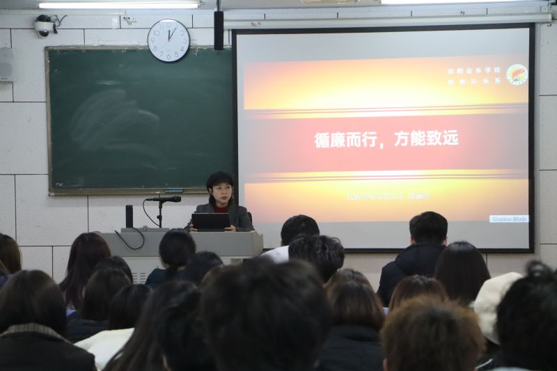 为深入贯彻落实教育部《关于加强和改进高校领导干部深入基层联系学生工作的通知》要求和全国、全省高校思想政治工作会议精神,发挥领导干部在思想政治教育工作中的示范引领作用,深入学习贯彻党的二十届三中全会精神,11月8日,民族声乐系党总支书记郎丽红作题为“循廉而行 方能致远”廉洁教育专题党课。民族声乐系2024级新生参加学习。