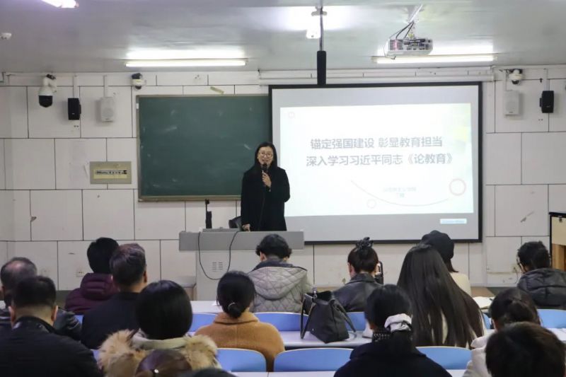 11月21日,民族声乐系特邀请马克思主义学院副院长丁楠作“锚定强国建设,彰显教育担当——深入学习习近平同志《论教育》”专题讲座。全系教师和入党积极分子参加讲座。讲座由民族声乐系党总支书记郎丽红主持。