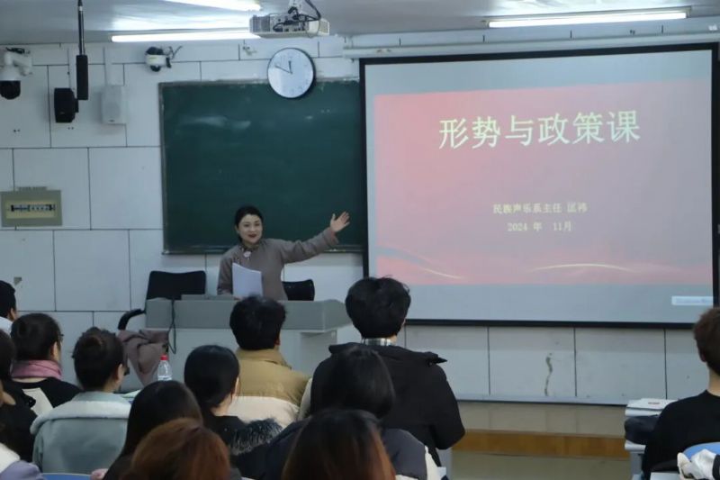 11月21日,民族声乐系主任匡祎为我系2024级新生讲授“形势与政策”课,主题为“弘扬井冈山精神,传承红色基因”。此次课程旨在通过回顾井冈山革命历史,传承和发扬伟大的井冈山精神,激励新时代青年学子坚定理想信念,为实现中华民族伟大复兴的中国梦贡献力量。