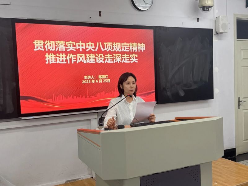 随后,郎丽红书记详细解读了中央八项规定及其实施细则精神的具体内容。她指出,中央八项规定是改进工作作风、密切联系群众的切入口和动员令,自实施以来,有效遏制了党内享乐主义、奢靡之风、形式主义、官僚主义等问题,成为改变政治生态和社会面貌的标志性举措。郎书记通过具体案例和数据,展示了八项规定实施以来,党内作风建设的显著成效和深刻变化。