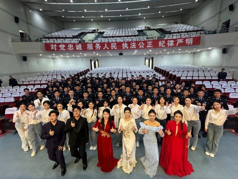 为传承五四精神,赓续红色血脉,民族声乐系“红色文艺轻骑兵”第30、31、32小分队,联合附属中等舞蹈学校,于4月29日,走进中国刑事警察学院研究生院,共同举办“弘扬五四精神 谱写青春华章”——“红色文艺轻骑兵”进校园暨五四青年节主题文艺晚会。两校师生以艺术为纽带,用歌声与舞蹈致敬五四精神,礼赞藏蓝警魂,为青年学子与人民警察献上一场饱含深情的视听盛宴。中国刑事警察学院研究生院党总支书记宁将军、禁毒与治安学院党总支副书记佟英林、研究生分团委书记吉俐涛、禁毒与治安学院二中队队长汤加兵、民族声乐系副主任柴玲、学生党支部书记易美含、附属中等舞蹈学校中国舞学科副主任王海军、国际标准舞学科教师商悦桃、教学实践管理办公室教师苗卉出席本次活动。活动由民族声乐系“红色文艺轻骑兵”主持人2022级研究生黄瑶主持。
