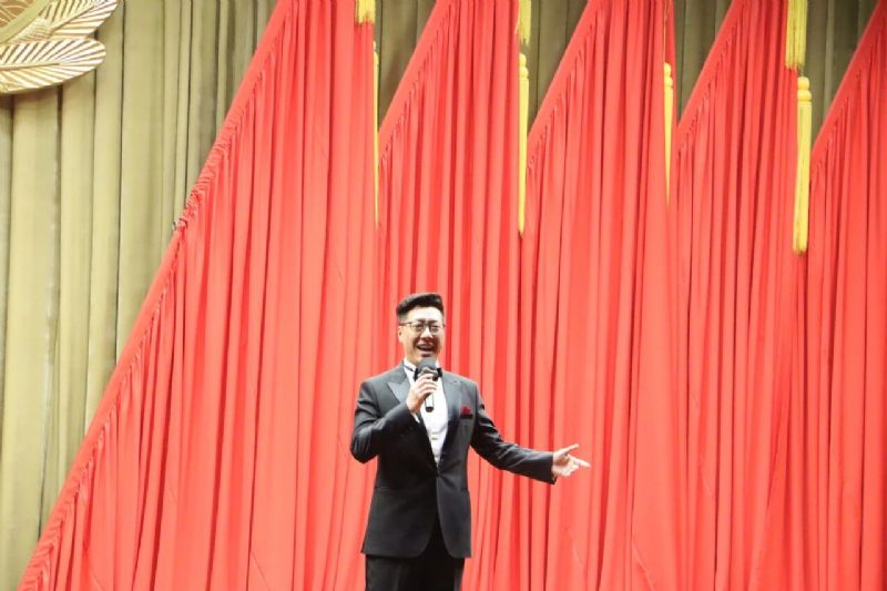 我系青年教师李超倾情演唱《我们的祖国歌甜花香》,深情讴歌家国大爱,将现场气氛推向高潮。