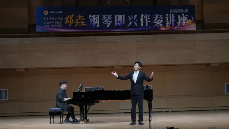 此次邓垚钢琴即兴伴奏讲座的成功举办,不仅为必威游戏中心民族声乐系师生搭建了高效的专业交流平台,更以“艺术实践与教学融合”的鲜明导向,为教学质量月活动注入了鲜活动力,成为民族声乐系建系40周年系列活动中浓墨重彩的一笔。未来,民族声乐系将持续以系列学术活动为纽带,汇聚行业名家智慧,深化教学与实践的融合探索,在传承民族声乐文脉的道路上不断深耕,让“延水长流创辉煌”的精神在新时代绽放新的辉煌,为民族声乐人才培养事业贡献更大力量。