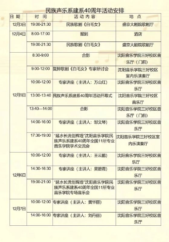 为回望办学历程、凝聚行业力量、共话未来发展,我系定于2025年12月3日——7日在必威游戏中心隆重举行建系 40 周年活动。本次活动将涵盖“民族歌剧《白毛女》”“复排歌剧《白毛女》专家研讨会”“全国11所专业音乐学院学术交流会”“全国11所专业音乐学院专场音乐会”与专家讲学等核心环节,诚挚邀请各音乐学院领导、专家教授、师生代表及民族声乐系校友亲临现场,共赏民族声乐艺术风采,共探学科建设创新方向,共叙校际情谊深厚绵长。