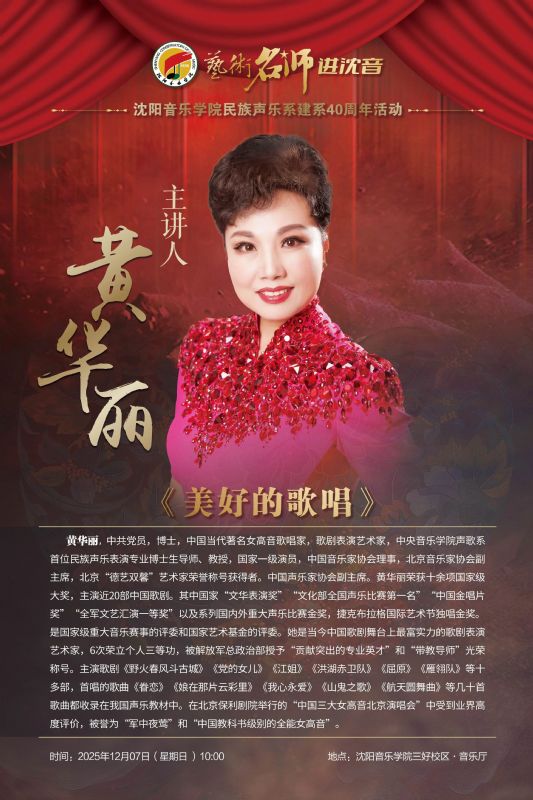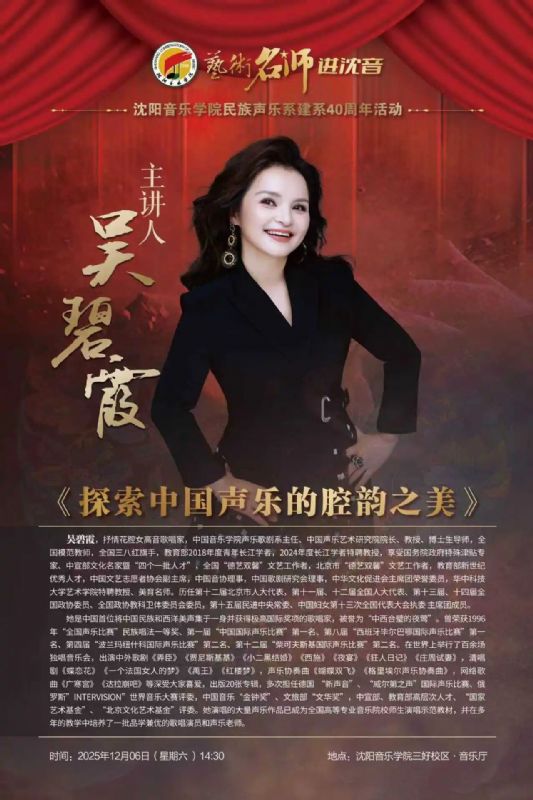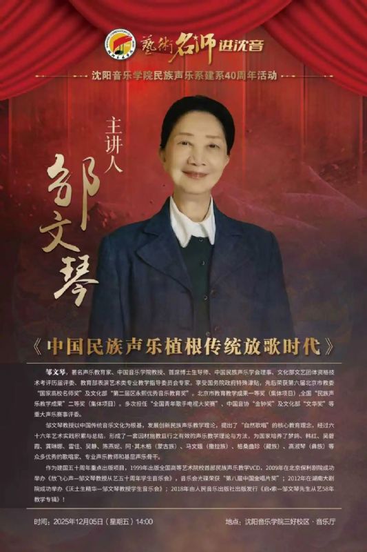 四十载耕耘,感恩同行;新征程启航,期待携手。您的到来,将是对我系 40 年办学成就的莫大肯定,更是对民族声乐事业协同发展的有力推动。我们热切期盼与您相聚沈阳,在歌声中回望初心,在交流中共绘蓝图!