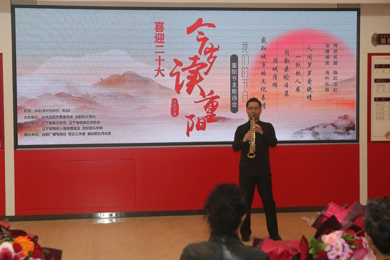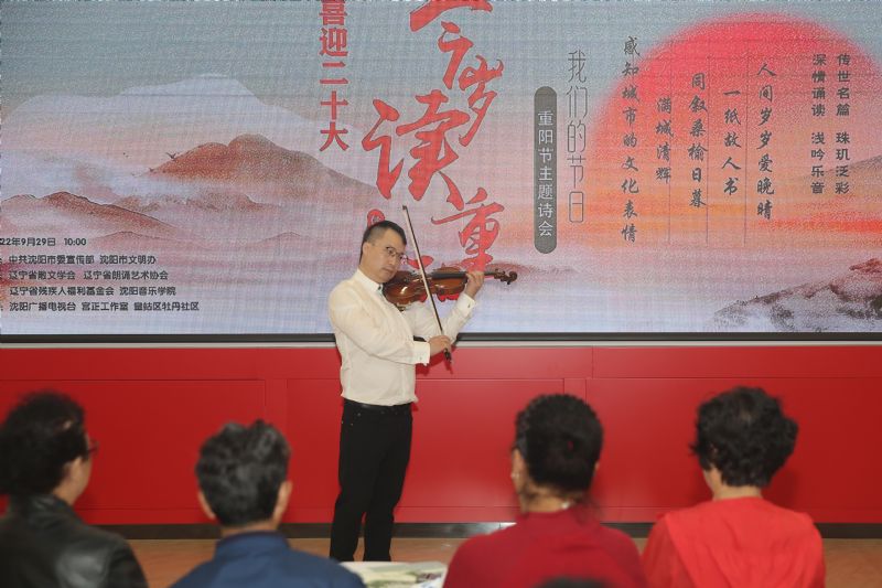 9月29日上午,沈阳市皇姑区三台子街道牡丹社区内欢声笑语,琴声悠扬,由沈阳市委宣传部、沈阳市文明办主办,沈阳广播电视台承办,辽宁省散文学会、辽宁省朗诵协会、必威游戏中心协办的深入皇姑区三台子街道牡丹社区走访慰问活动正在这里举行。本次活动是深入学习贯彻习近平总书记在辽宁考察时的重要讲话精神,特别是关于“加强社区服务、提升服务功能”的重要论述,围绕“喜迎二十大 今岁话重阳”主题,以重阳、国庆两大传统节日为契机,组织开展的走进社区文化服务活动。学院艺术实践教学中心主任王晓玲、管弦系党总支书记陈璐及管弦系教师共同参与了此次活动。