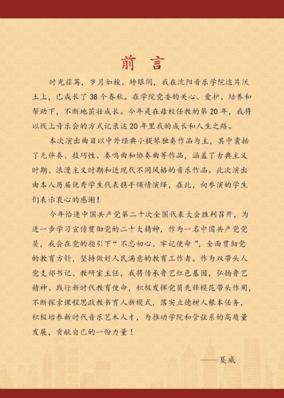 管弦系成功举办“党的二十大和我的人生路”——戛威教授教学二十周年音乐会