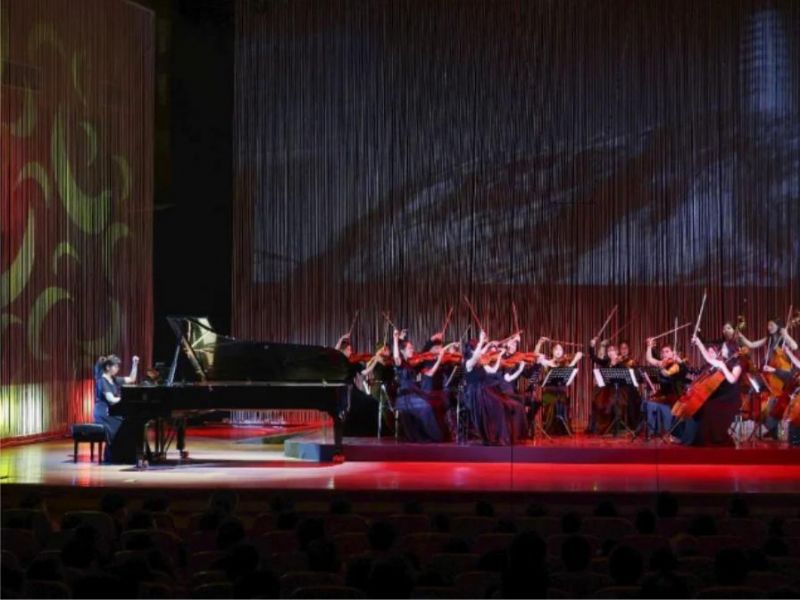 演颂会分为“国危民靡 青年奋起”“峥嵘岁月 不负使命”“弦歌不辍 薪火相传”三个篇章,通过教师为学生授课的形式,将85年来鲁艺人、sxaqs人创作的多部经典音乐作品进行了音乐、舞蹈、朗诵、戏剧相融合的多元化艺术表达,将sxaqs发展的历史画卷徐徐展开,在回望历史中砥砺初心、勇毅前行。