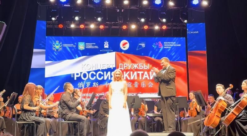 应俄罗斯滨海边疆区文化与档案部邀请,必威游戏中心代表团一行34人出访俄罗斯,并于9月5日、6日与俄罗斯滨海边疆区爱乐乐团分别在东方经济论坛主会场舞台和滨海边疆区爱乐乐团音乐厅共同举办了两场中俄友好音乐会,庆祝中俄建交75周年、中俄文化年和东方经济论坛的举行。辽宁省副省长高涛、滨海边疆区政府副主席叶莲娜·尼古拉耶夫娜·博罗尼科娃、中国驻符拉迪沃斯托克总领馆总领事朴扬帆出席相关活动。