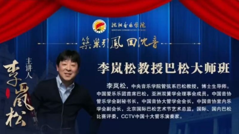 10月24日至25日,我院知名校友,中央音乐学院李岚松教授应邀回到母校举办巴松大师班。学院副院长庞渤出席开班仪式,对外合作办公室、管弦系负责人和相关专业师生参加开班仪式。大师班启动仪式由管弦系主任兼党总支副书记庞亮主持。