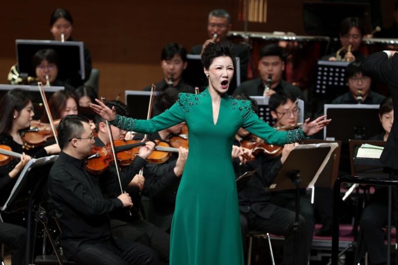 《春之声圆舞曲》再次让春天的气息涌动全场,花腔女高音以青春活力唱响万物复苏。《c小调第五交响曲“命运”Op.67》,作品传达了不屈不挠的英雄主义精神,激励人们在生活的激流中勇敢前行。著名的男高音咏叹调《今夜无人入睡》,旋律优美动人,充满了戏剧性的张力,仿佛穿越时空界限的音乐回响耳畔,令观众深深沉醉。在音乐会的尾声,中国交响乐作品《丰收》将演出气氛推向了高潮。富有韵律的节奏和欢快的鼓点在现场回响,跳跃的音符鲜活勾勒出劳动的热闹场景。激昂澎湃的旋律层层递进,如跃动的金色麦浪、欢腾的丰收庆典,淋漓尽致地展现出人民收获硕果时的喜悦与豪情。现场观众沉浸于充满生命力与希望的丰收盛宴,热情高涨,全场爆发出热烈的掌声。
