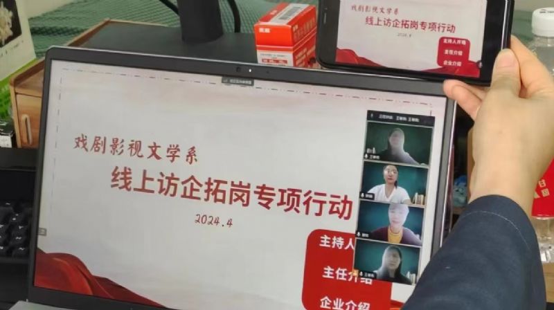 同时,戏剧影视文学系还通过线上方式与沈阳市铁西区悦动华章艺术培训中心、辽宁高昇教育信息咨询有限公司、嘉点芥末(辽宁)文化传媒有限公司四家企业开展了“访企拓岗促就业”专项行动。会议上,三家企业分别介绍了公司的基本概况与岗位人才需求,戏剧影视文学系主任董艳详细介绍了系内人才培养情况和专业特色。双方表示将持续深入合作,共同促进毕业生高质量就业,并探索校企合作模式创新。图片