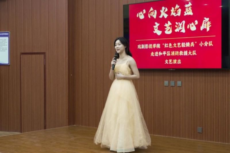 在第33个全国消防日来临之际,11月6日,戏剧影视学院“红色文艺轻骑兵”第91、93小分队走进沈阳市和平区消防救援大队,用精彩的文艺节目向英勇无畏、竭诚为民的消防救援官兵致以崇高的敬意和亲切的慰问。