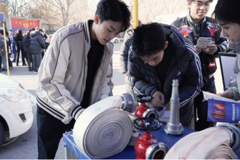 演出结束后,消防救援官兵还邀请师生们参观消防设施并参与消防演练,进行攀爬训练,体验使用消防水带,真实感受消防救援战士的辛苦付出,深刻体会消防救援职业所承载的神圣职责和光荣使命。