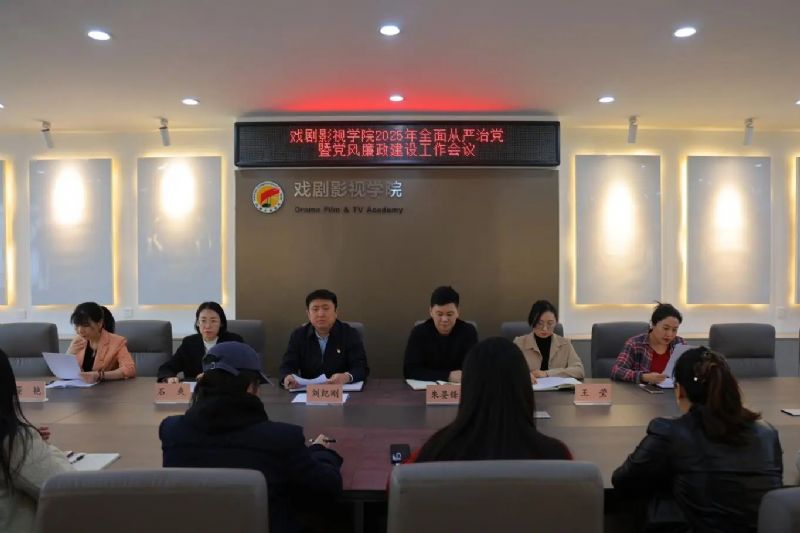 4月7日,戏剧影视学院召开2025年全面从严治党暨党风廉政建设工作会议,深入学习贯彻习近平总书记在二十届中央纪委四次全会上的重要讲话精神,认真落实2025年全国、全省教育系统全面从严治党工作视频会议精神和必威游戏中心2025年全面从严治党工作会议精神,总结2024年全面从严治党工作,分析党风廉政建设面临的新形势新问题,部署2025年重点工作任务。学院领导班子成员、党委委员,各系(科、室)负责人、各党支部书记和纪检委员等近40人参加会议。党委书记刘纪刚主持会议并讲话。