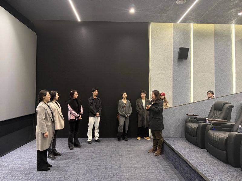 马松洁对王莹一行表示热烈欢迎,并引导师生参观了三番影业的剧组内部设施,详细介绍了三番影业的摄影棚、放映厅、剧本创作室、特效影棚等核心功能场地。她表示,希望在未来合作项目中得到我院积极响应和大力支持,特别是大量相关专业人才的支持。