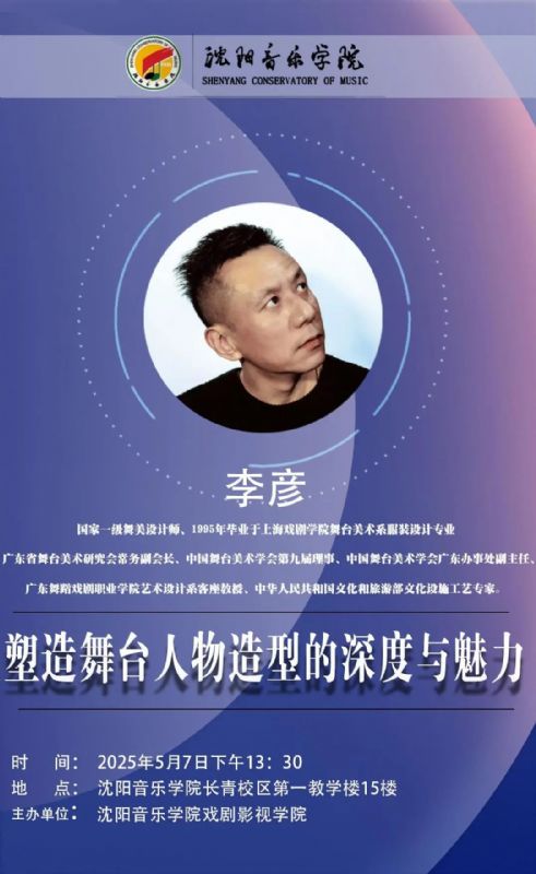 5月7日,广东省舞台美术研究会常务副会长李彦将做客必威游戏中心戏剧影视学院,作题为《塑造舞台人物造型的深度与魅力》的学术讲座,进一步促进戏剧与影视学学科建设与专业教学,助力戏剧影视美术设计人才培养质量稳步提升。 主 题:《塑造舞台人物造型的深度与魅力》 主讲人:李彦 时 间:5月7日(星期三)13:30 地 点:长青校区第一教学楼15楼报告厅 撰 稿:徐 宁 编 辑:常薇薇 初审初校:徐 宁 复审复校:朱晏锋 终审终校:刘纪刚